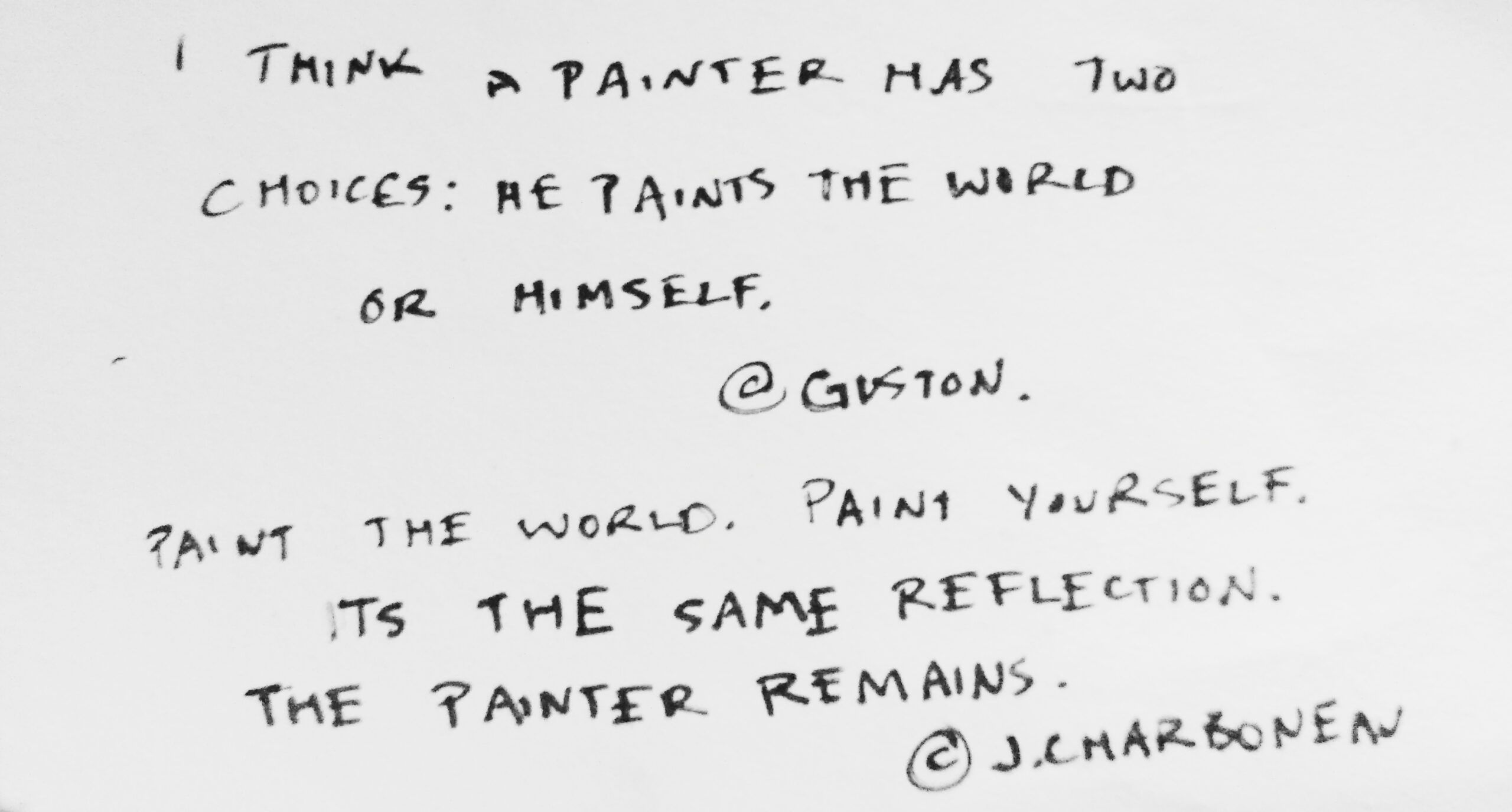 … So that is my idea on art, I see it not as a simple gratification, but a challenge to use that creative intuition that is within us all. I take my thoughts, inspirations, and memories-break them down, to the rawest form and give them to the viewer to make of it what they wish…. To use their creative intuition, throw caution and sense to the wind and truly honestly make it their own…