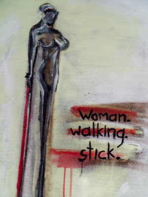 Woman. walking stick