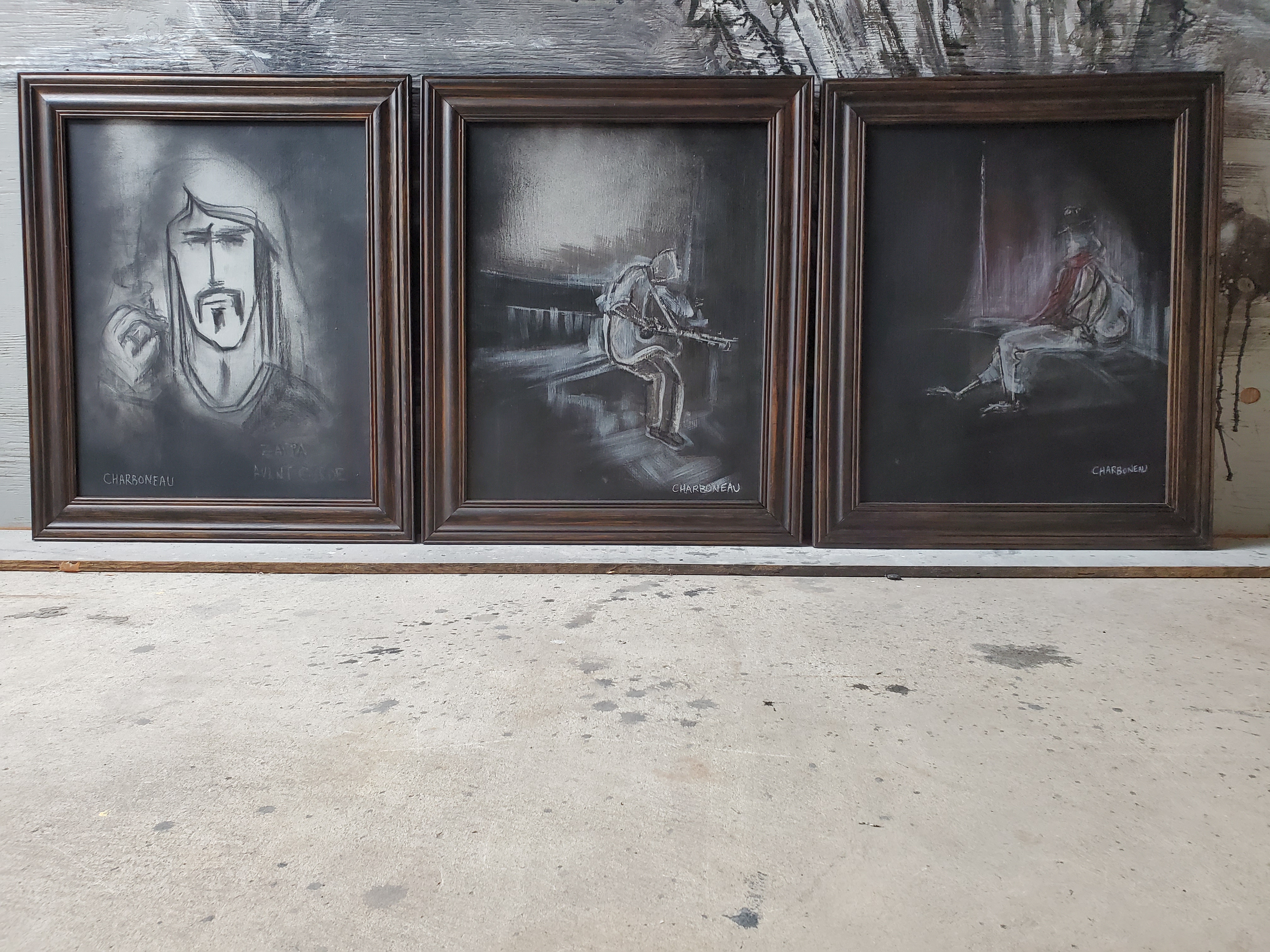 An original mixed media painting from The Midnight Collection. (The first portrait created in The Midnight Collection) The artwork depicts a portrait of the notable, Frank Zappa in a mundane black and white silhouette… acrylic, spray paint, ink, oil pastel and charcoal on canvas 16″ x 20″ framed (c) 2017