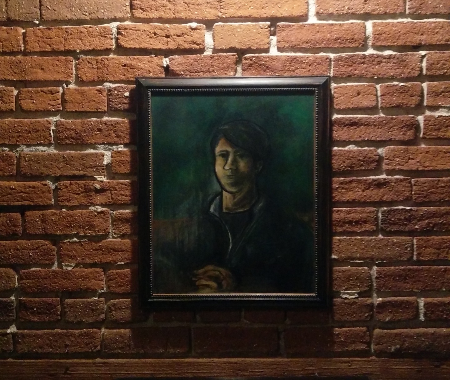 An original mixed media painting from The Midnight Collection. The artwork depicts a portrait of a woman rendered with palette colors from a Picasso painting. acrylic, ink, oil pastel and charcoal on canvas 16″ x 20″ framed in a restored vintage frame (c) 2018