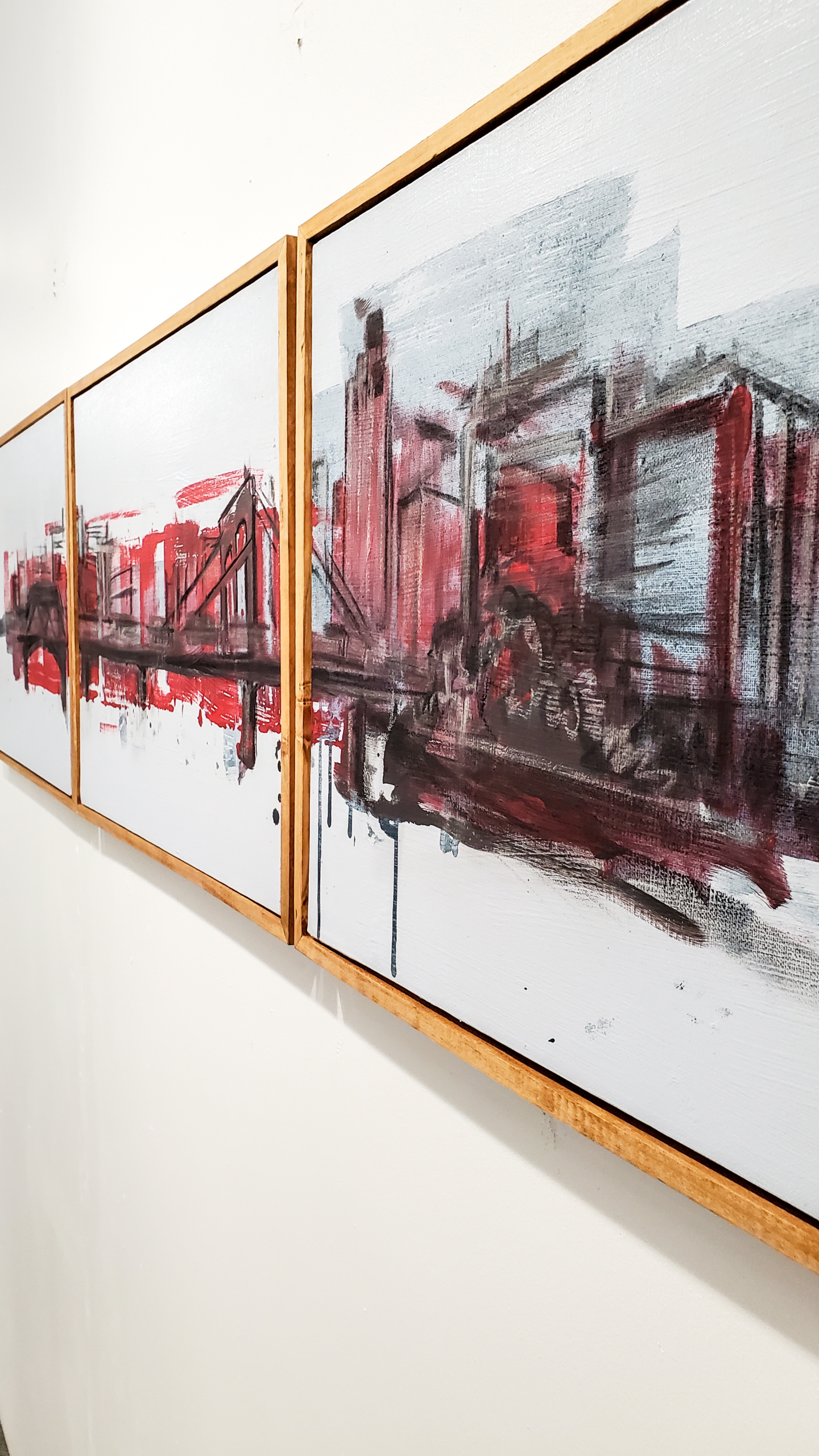 An original mixed media painting from the Mindscapes Collection. “Mindscapes” is a collection of long forgotten landscapes and the simplicity they hold. Nothing and Everything beyond that horizon line… meditate into the abyss. This is a 3 – piece painting on canvas (triptych) featuring a street scene from Minneapolis, MN. acrylic, oil pastel, ink, and…