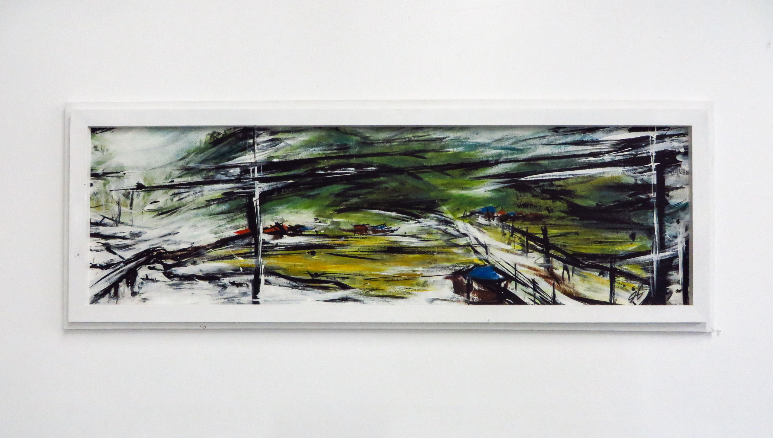 An original mixed media painting on canvas. The artwork depicts the landscape of South Korea as viewed from buses and trains. I spent a lot of time on public transportation while living in Korea from 2011-2013 and it offered me numerous moments of inspiration from witnessing the country through a window frame. This painting began…